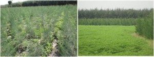 The farmers of Thanjavur, Trichy, South Arcot, and Chengalpet districts in Tamil Nadu, are cultivating annual food crops along with Casuarina equisetifolia. Farmers grow groundnut (Arachis hypogea) or melons on sandy soils. Sesame (Sesamum indicum) in red soil, Turmeric (Curcuma sp.) in heavy soil as an intercrop with Casuarina in the first year. When banana (Musa sapientum) and tapioca (Manihot utilissimum) are raised as intercrop under irrigated condition Casuarina added more nitrogen to soil, such intercropping is not possible beyond the first year of Casuarina growth due to over shading2. However Casuarina equisetifolia can be intercropped with Moringa olifera alternatively at an espacement of 2 m up to the age of 3 years Casuarina equisetifolia reached a pole of 3-4 m height with a basal girth of 28 cm. Income from the Casuarina equisetifolia amounted to Rs 14966 and Moringa olifera Rs 38055 over the period of three years1. Vinay Rai and Suresh3 showed that some fodder grasses registered an increase in growth when intercropped with C. equisetifolia.