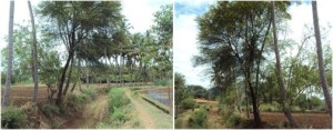 Traditional rainfed crops like sorghum and maize are cultivated with scattered trees. As irrigation facilities are increasing, people are retaining exotic species like Casuarina, Leucaena leucocephala, Sesbania grandiflora, and other trees on the bunds only. In many parts of southern part of India, poles harvested from 3-4 year old trees is widely used forhousing in rural areas and hence fetch a premium price even in rural markets. As these species grow straight with very few side branches, the trees planted in rows on field bunds serve as windbreaks for protecting arable crops from wind and hot weather without competing for sunlight and moisture.